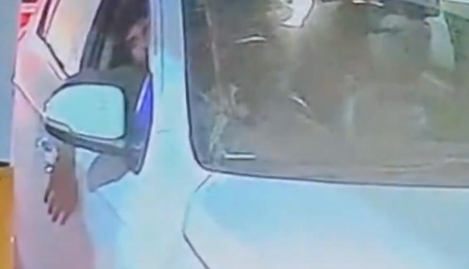 Two screengrabs from the CCTV footage clearly capture the driver’s face behind the wheel.