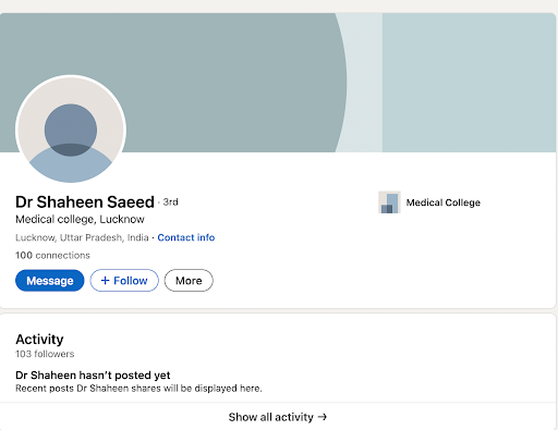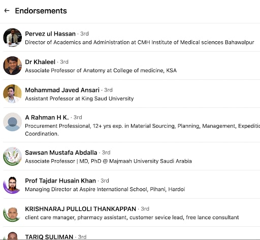 According to these sources, Dr Saeed’s LinkedIn profile lists endorsements from doctors based in Saudi Arabia and India, but what has drawn investigators’ attention is one endorsement from Dr Pervez ul Hassan, a Pakistani medical professional with a military background.