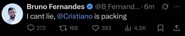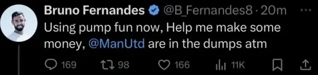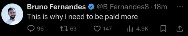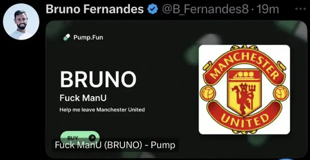 Bruno Fernandes’s X account has been hacked.Supporters should not engage with any of the posts or direct messages.
