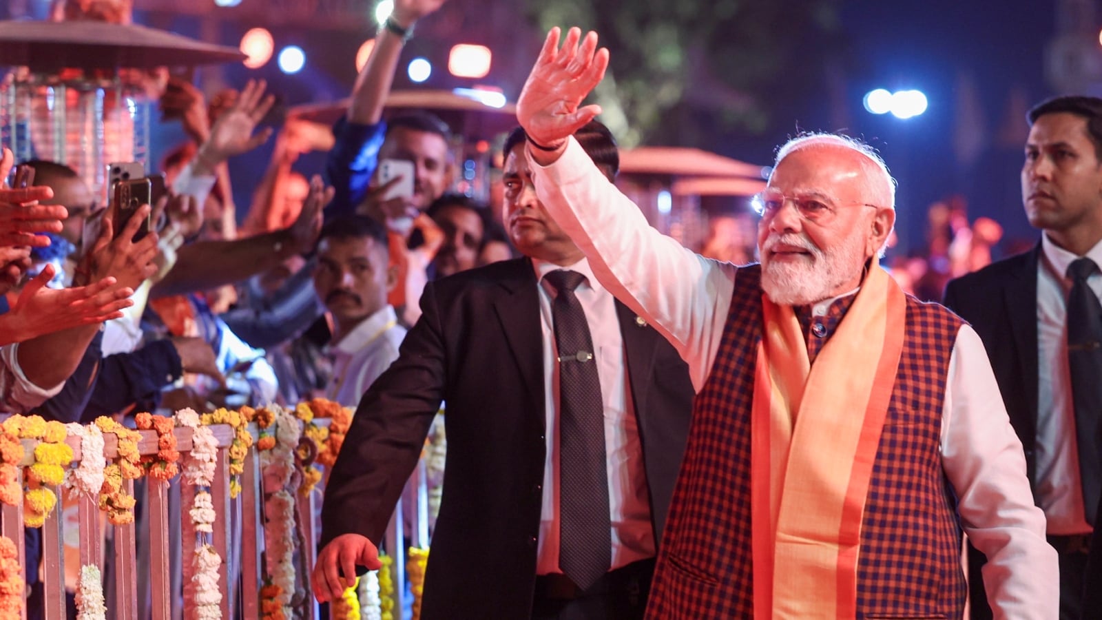 The Prime Minister received a rousing welcome as chants of 'Modi, Modi' filled the air. (PMO)