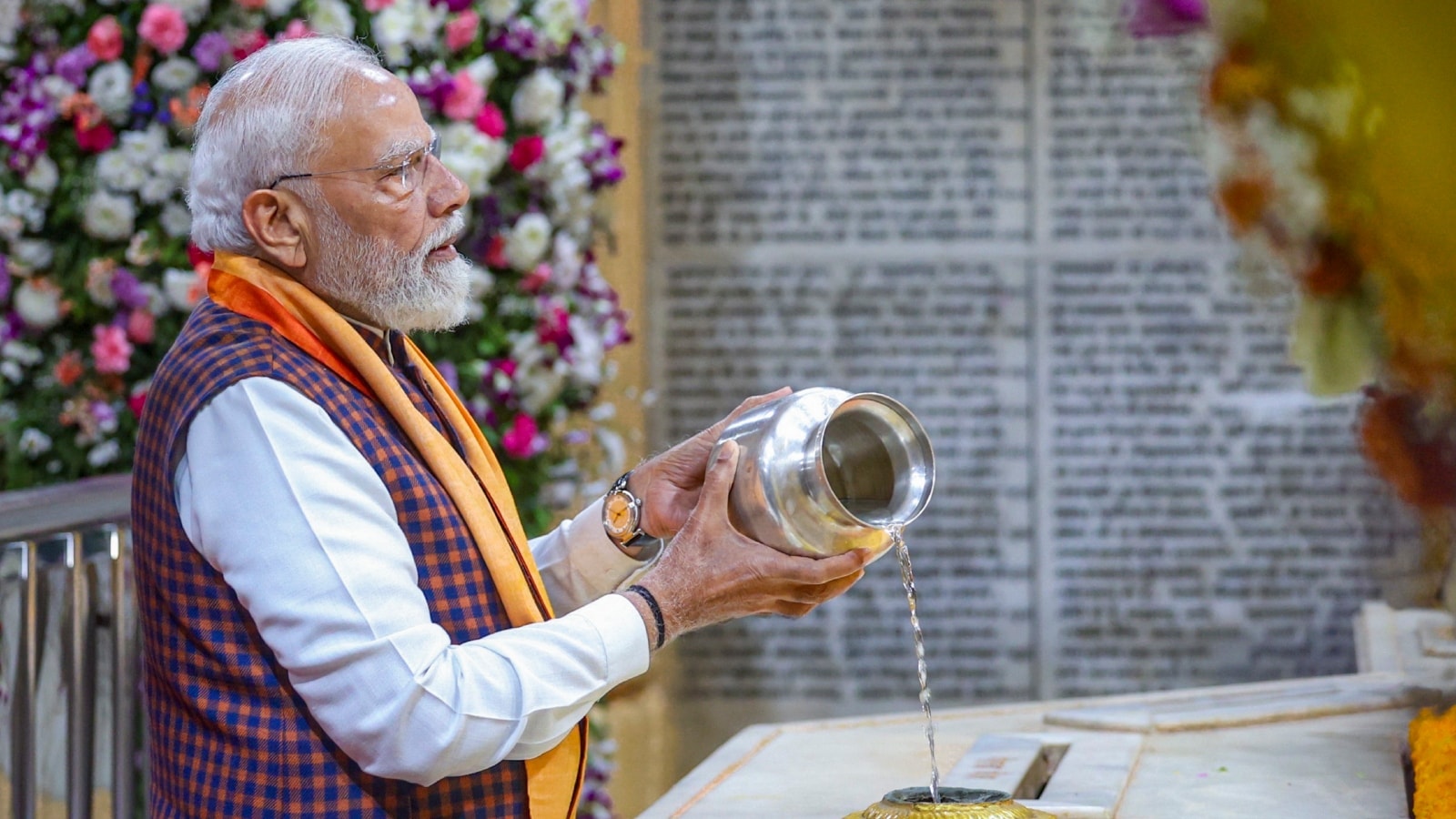 Prime Minister Modi offered prayers upon arriving at the iconic temple in Gujarat. (PMO)