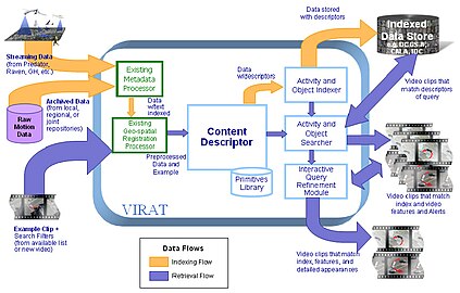 The Video and Image Retrieval and Analysis Tool program is a video surveillance project funded by the Information Processing Technology Office of the Defense Advanced Research Projects Agency. The... Wikipedia