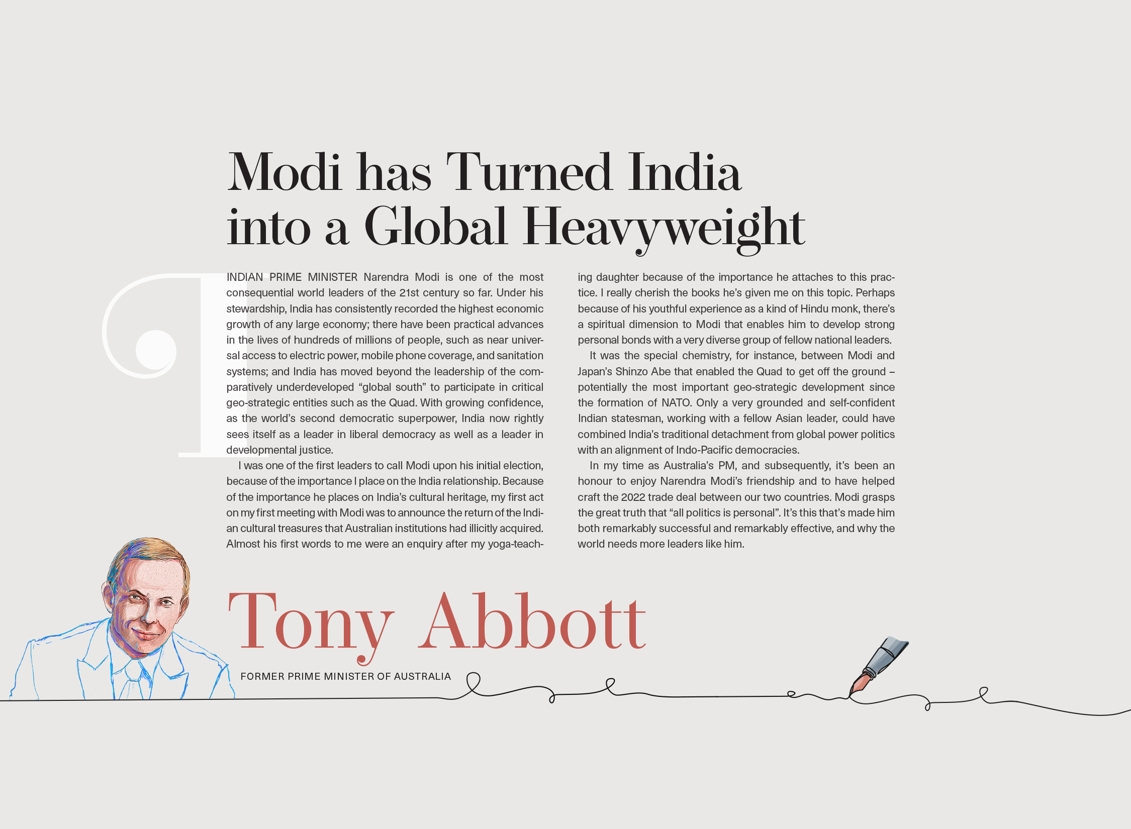 Adding depth to the narrative are reflections from distinguished voices across the world. Former Australian Prime Minister Tony Abbott has written the preface, sharing his impressions of Narendra Modi’s leadership. Israeli Prime Minister Benjamin Netanyahu addresses his friend “Narendra" in a personal letter. The Prime Minister of Trinidad and Tobago, Kamla Persad-Bissessar, offers her perspective, while leading figures from India’s corporate sector reflect on his vision for growth and development. Together, these contributions highlight the breadth of his global relationships and the impact of his leadership across sectors.