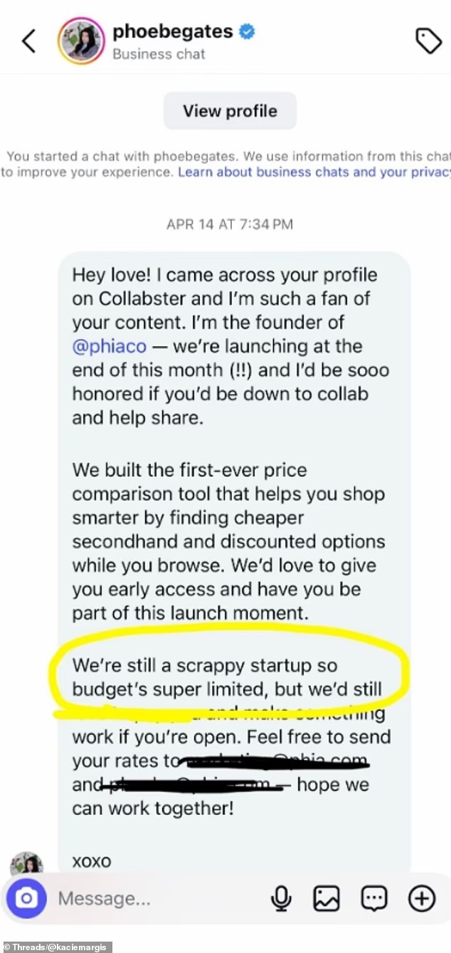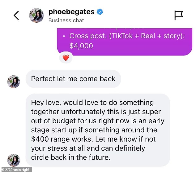 Phoebe Gates is facing backlash after alleged Instagram messages linked to her startup Phia were leaked online, with some influencers saying the brand offered them less than what they usually charge for collaborations.