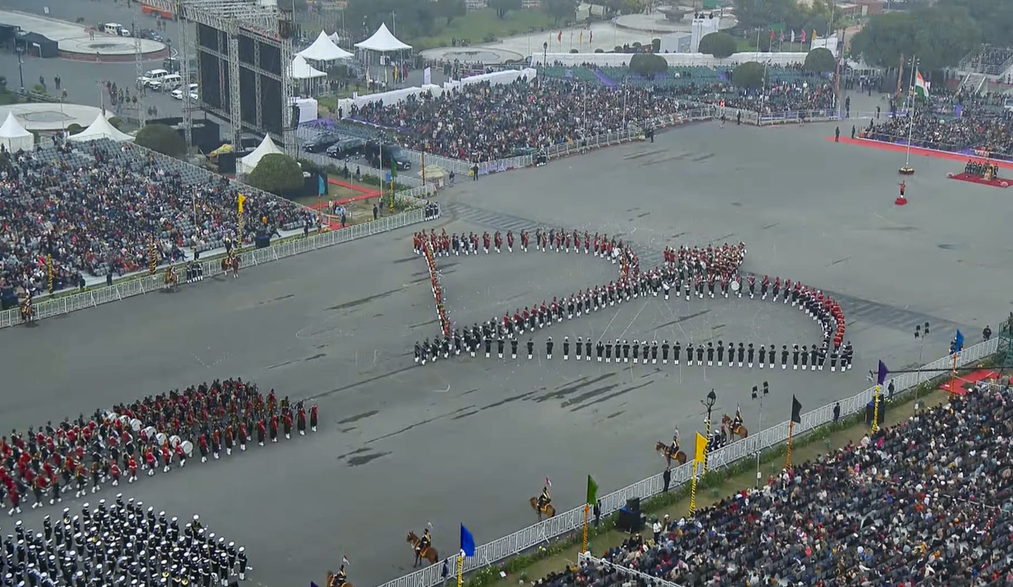 Armed forces personnel form a soldier formation during the Beating Retreat ceremony.
