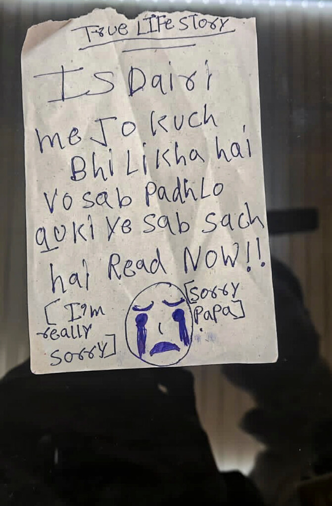 Investigators recovered a diary containing a handwritten message that read, “Sorry papa, I am really sorry," along with a crying-face emoji. The note also urged readers to go through everything written in the diary.