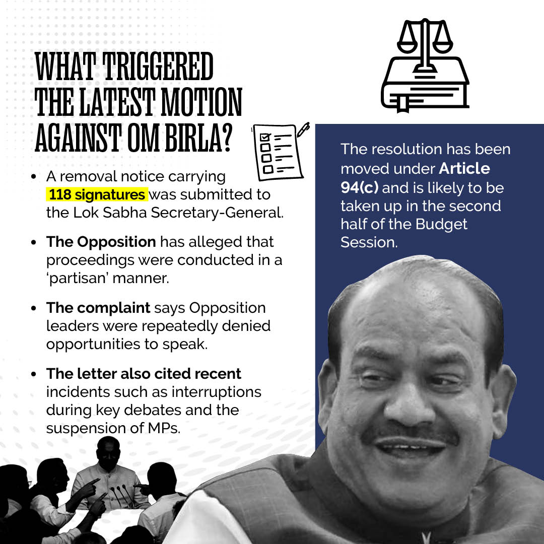 Opposition parties submitted a notice to remove Om Birla as Lok Sabha speaker, accusing him of partisan conduct and making false allegations against Congress MPs.