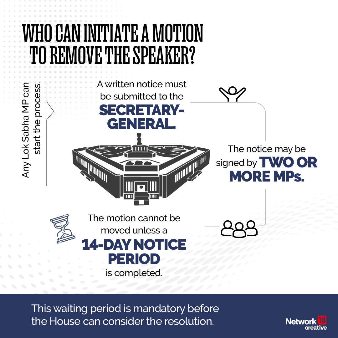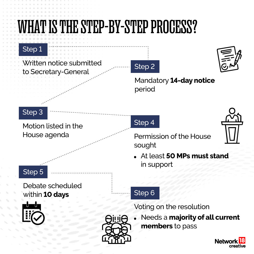The process begins with a written notice of intention to move a resolution for removal. Parliamentary rules mandate a minimum notice period of 14 days.