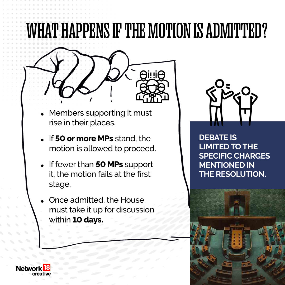 Once admitted, the House must take up the motion within 10 days, with debate limited to the stated charges. It must secure a majority of the total membership to pass.