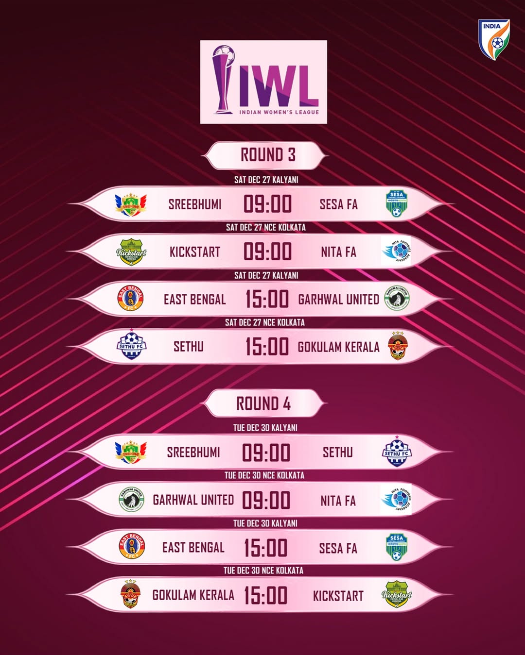 Indian Women’s League 2025-26 starts December 20 at NCE Kolkata with Sethu FC vs Kickstart FC. Eight teams play in two phases across NCE and Kalyani Municipal Stadium.