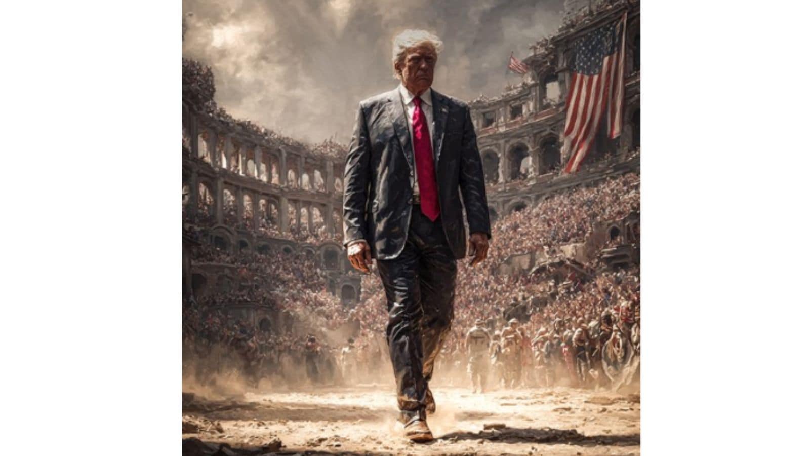 On July 26, the White House dropped another photo of besuited Trump heroically striding into the Colosseum. The photo was captioned with a quote of former President Theodore Roosevelt. (White House/X)