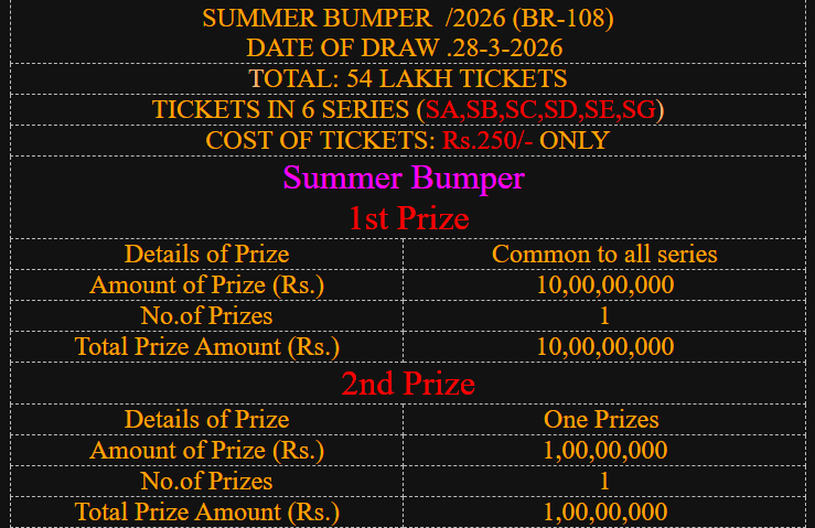 - Lottery Name: Kerala Summer Bumper 2026 (BR-108)