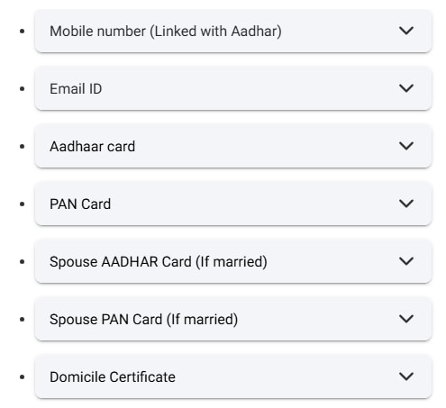 - Income Proof (Income Tax Returns or Tehsildar Certificate)