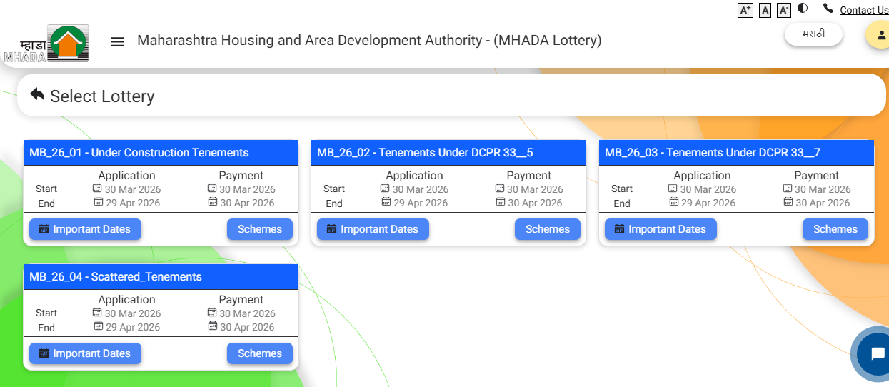 Stay up-to-date on the available schemes by visiting the MHADA portal: