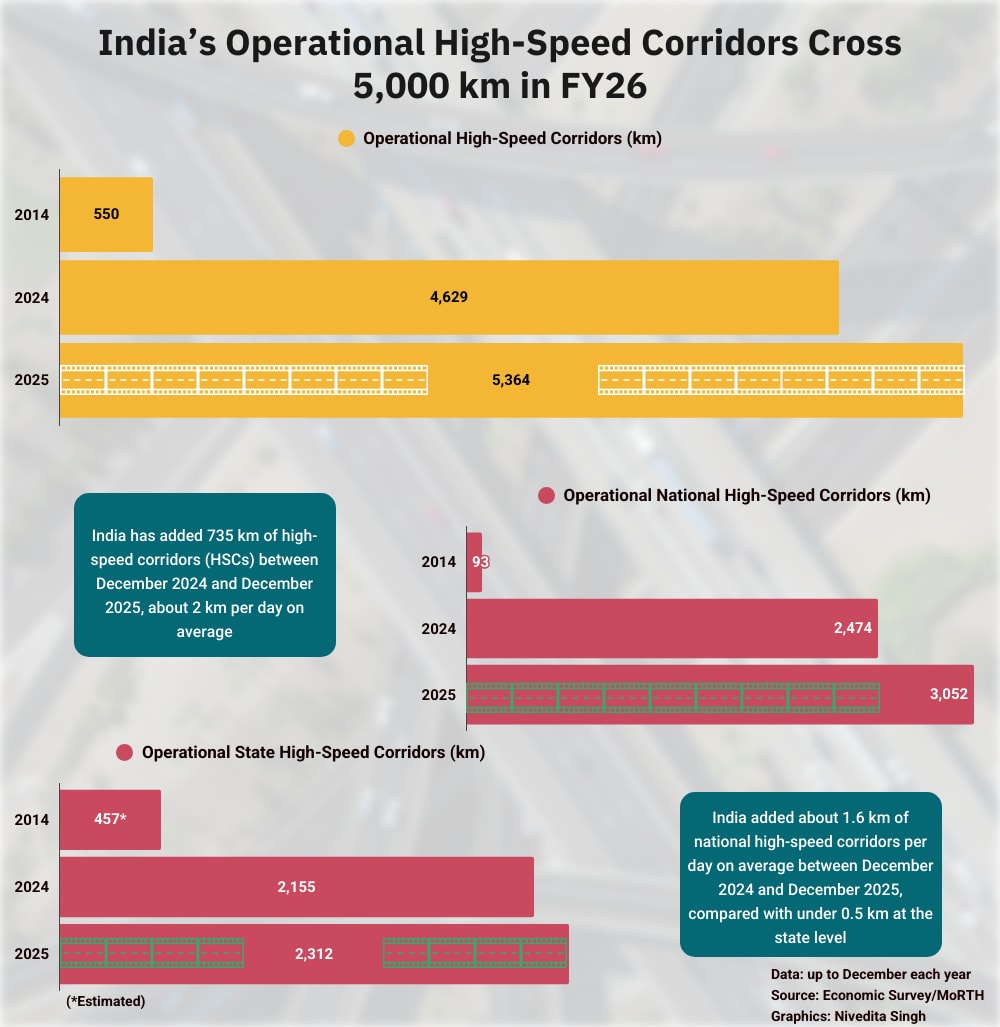 The total operational length of high-speed corridors in India crossed 5,000 km this financial year, touching 5,364 km by December 2025.