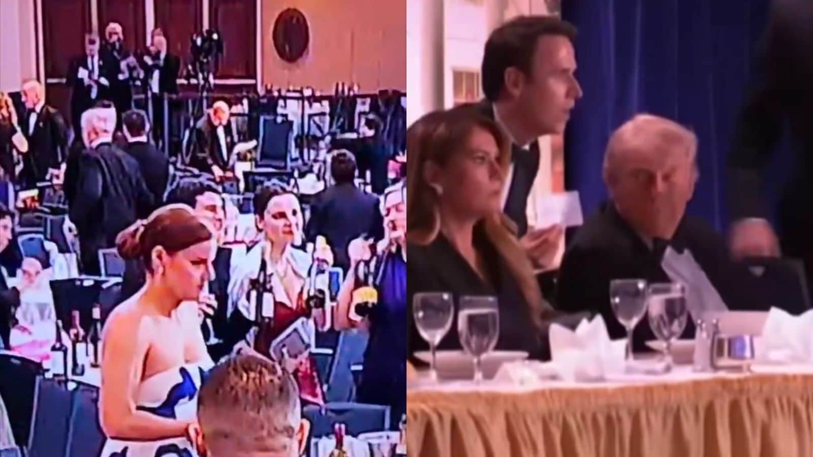 The internet is reeling after viral clips show journalists looting the bar during a live assassination scare at the Black-Tie Gala.